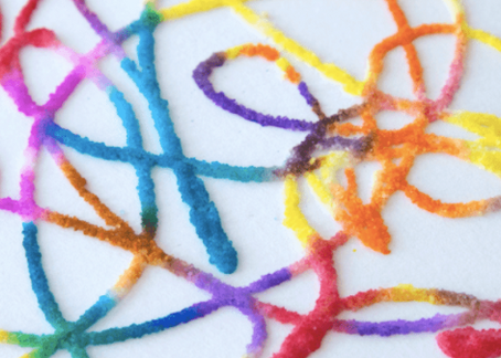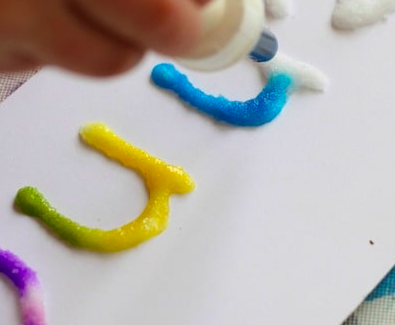 Squeeze glue designs onto your card/paper Sprinkle with salt and then add colour!